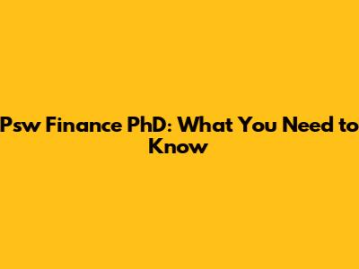 Psw Finance PhD: What You Need To Know