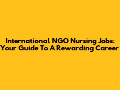 International NGO Nursing Jobs: Your Guide To A Rewarding Career