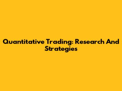 Quantitative Trading: Research And Strategies