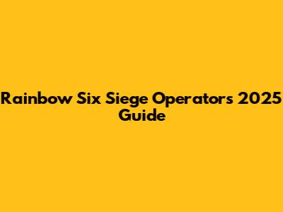 Rainbow Six Siege Operators 2025 Guide