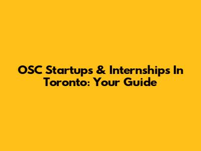 OSC Startups & Internships In Toronto: Your Guide