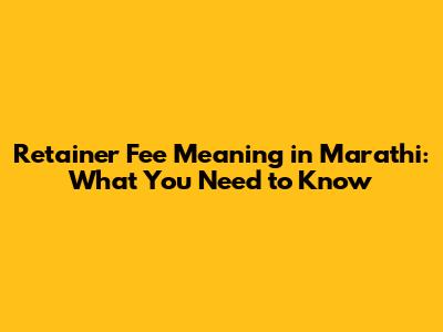Retainer Fee Meaning In Marathi: What You Need To Know