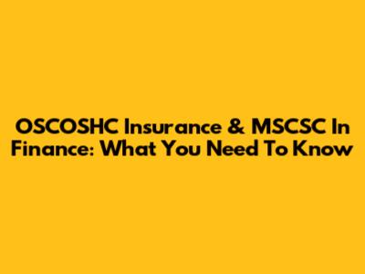OSCOSHC Insurance & MSCSC In Finance: What You Need To Know