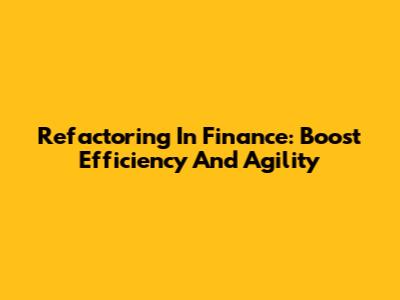 Refactoring In Finance: Boost Efficiency And Agility
