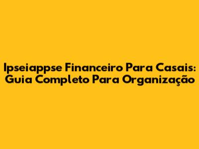 Ipseiappse Financeiro Para Casais: Guia Completo Para Organização