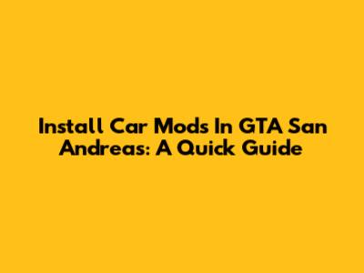 Install Car Mods In GTA San Andreas: A Quick Guide