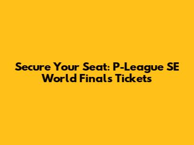 Secure Your Seat: P-League SE World Finals Tickets