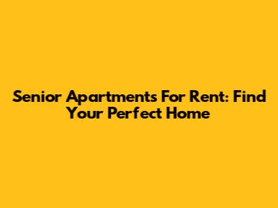 Senior Apartments For Rent: Find Your Perfect Home