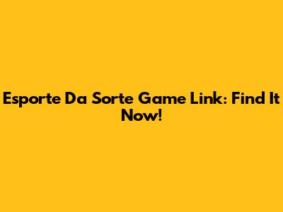 Esporte Da Sorte Game Link: Find It Now!