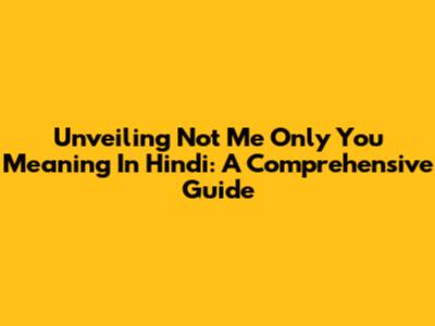 Unveiling 'Not Me Only You' Meaning In Hindi: A Comprehensive Guide