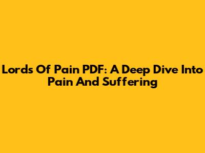 Lords Of Pain PDF: A Deep Dive Into Pain And Suffering
