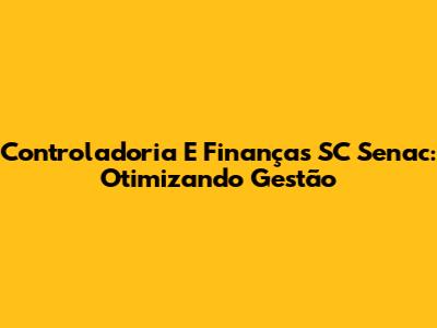 Controladoria E Finanças SC Senac: Otimizando Gestão
