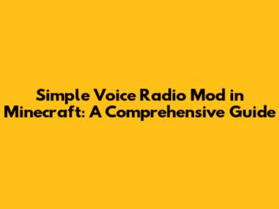 Simple Voice Radio Mod In Minecraft: A Comprehensive Guide