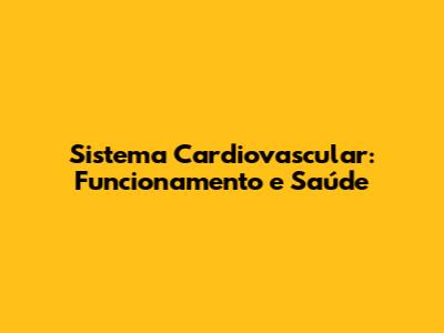 Sistema Cardiovascular: Funcionamento E Saúde