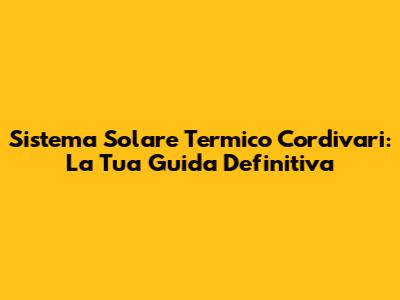 Sistema Solare Termico Cordivari: Guida Completa