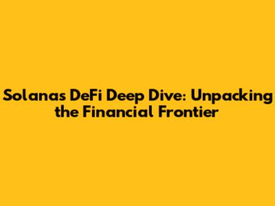 Solana's DeFi Deep Dive: Unpacking The Financial Frontier