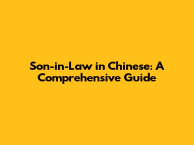 Son-in-Law In Chinese: A Comprehensive Guide
