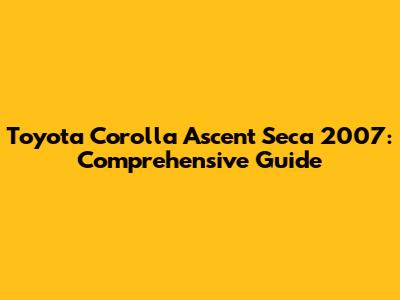Toyota Corolla Ascent Seca 2007: Comprehensive Guide