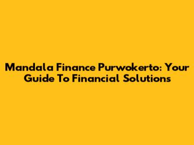 Mandala Finance Purwokerto: Your Guide To Financial Solutions