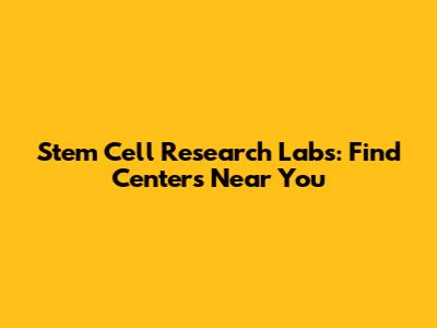 Stem Cell Research Labs: Find Centers Near You