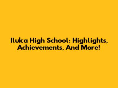 Iluka High School: Highlights, Achievements, And More!