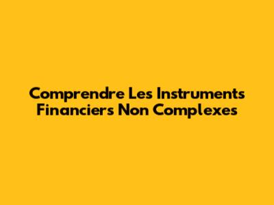 Comprendre Les Instruments Financiers Non Complexes