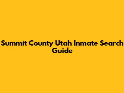 Summit County Utah Inmate Search Guide