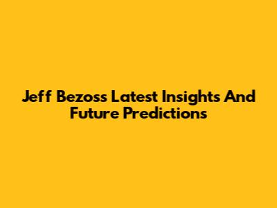 Jeff Bezos's Latest Insights And Future Predictions