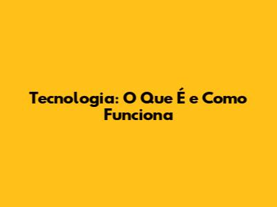 Tecnologia: O Que É E Como Funciona