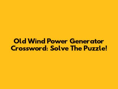 Old Wind Power Generator Crossword: Solve The Puzzle!