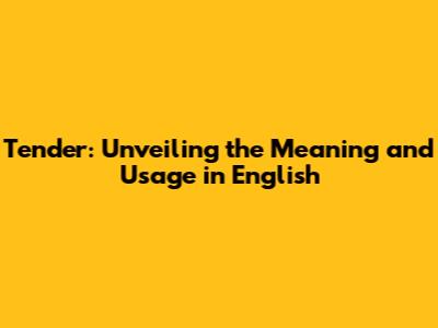 Tender: Unveiling The Meaning And Usage In English