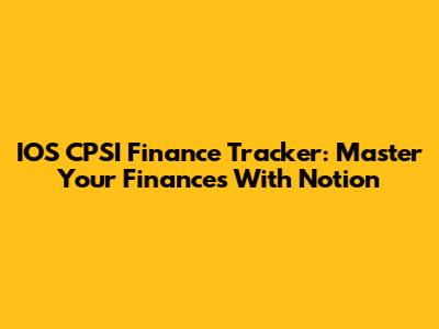 IOS CPSI Finance Tracker: Master Your Finances With Notion