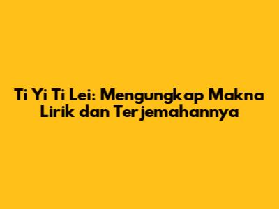 Dengan memahami terjemahannya, kita akan dapat lebih menghargai Ti Yi Ti Lei. Kita akan dapat merasakan emosi yang ingin disampaikan oleh penyanyi, dan kita akan dapat terhubung dengan lagu ini pada tingkat yang lebih dalam. Jadi, bersiaplah untuk menyelami dunia Ti Yi Ti Lei melalui terjemahan yang telah kami siapkan!