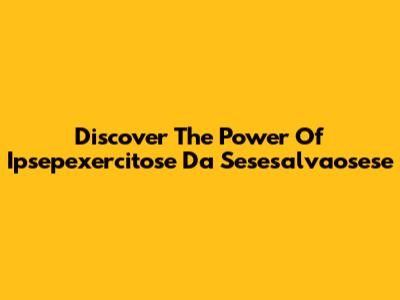 Discover The Power Of Ipsepexercitose Da Sesesalvaosese