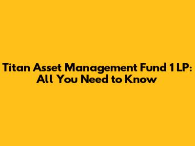 Are you curious about Titan Asset Management Fund 1 LP? If you're diving into the world of investment funds, it’s essential to get a handle on what these funds are all about. This article will break down everything you need to know about Titan Asset Management Fund 1 LP in a clear, engaging way. We'll explore its strategies, performance, and key aspects, so you can make informed decisions. Let's get started!