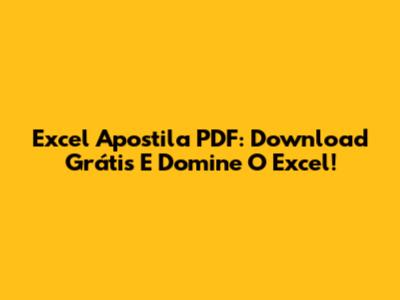 Excel Apostila PDF: Download Grátis E Domine O Excel!