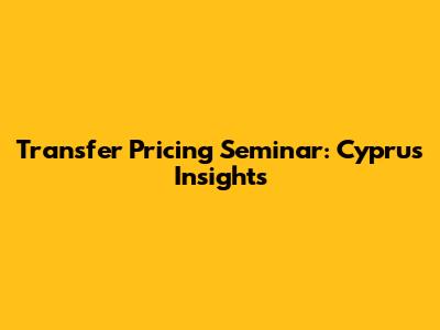 Transfer Pricing Seminar: Cyprus Insights