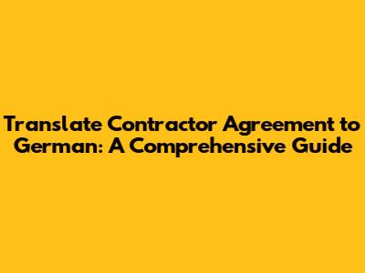 Translate Contractor Agreement To German: A Comprehensive Guide
