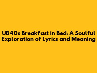UB40's Breakfast in Bed: A Soulful Exploration of Lyrics and Meaning
