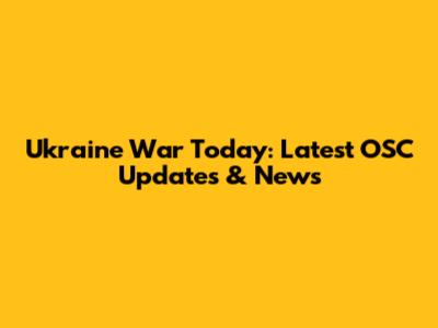 Ukraine War Today: Latest OSC Updates & News