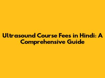Ultrasound Course Fees In Hindi: A Comprehensive Guide