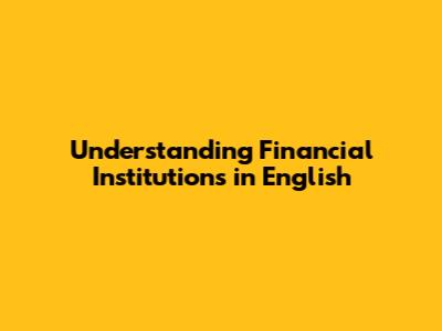 Understanding Financial Institutions In English