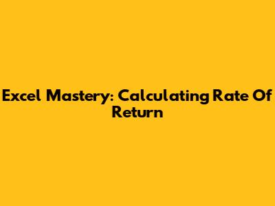 Excel Mastery: Calculating Rate Of Return