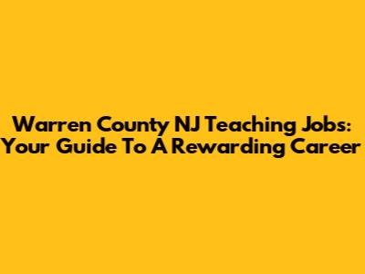 Warren County NJ Teaching Jobs: Your Guide To A Rewarding Career