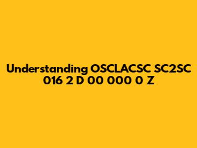 To begin understanding OSCLACSC SC2SC 016 2 D 00 000 0 Z, let's look closer at its structure. The code comprises several segments, each potentially representing different information. Breaking it down like this is super helpful, guys! Here's a possible dissection: