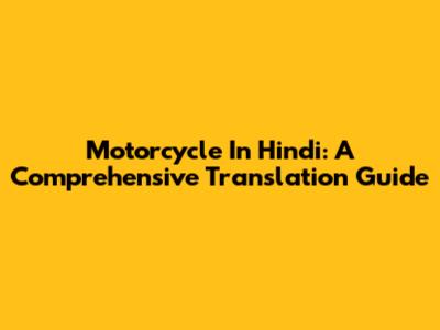 Motorcycle In Hindi: A Comprehensive Translation Guide
