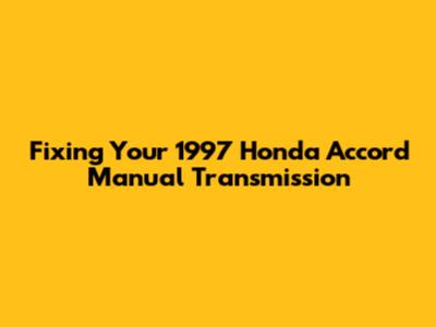 Fixing Your 1997 Honda Accord Manual Transmission