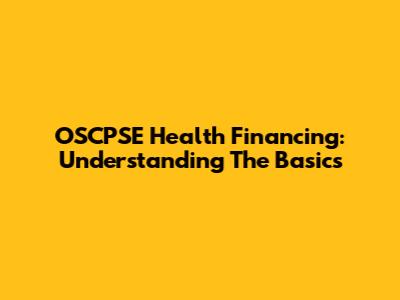 OSCPSE Health Financing: Understanding The Basics