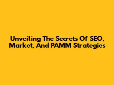 Unveiling The Secrets Of SEO, Market, And PAMM Strategies