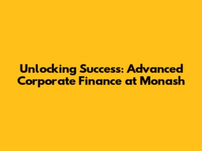 Unlocking Success: Advanced Corporate Finance At Monash